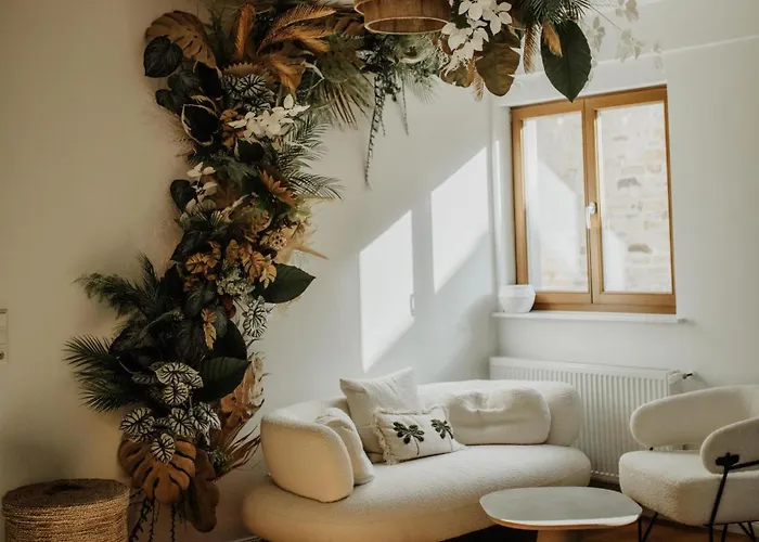 Modern Boho-Style Apartmentアパ-トメントには,器具でいっぱいの台所,ソファ,コ-ヒ-/紅茶メ-カ- と座席付きの客室があります. エックコップフまで車で10分,エアレプニスガルテン・ダイデスハイムまで徒歩わずか5分です.
